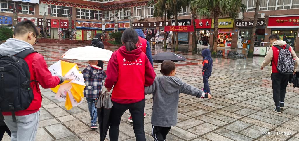 虽然当天下着丝丝细雨,但孩子们对校外实践活动的热情丝毫不减,志愿者们拉着孩子们的手,彼此的心灵也交织在一起。出发前,志愿者各自询问了每个孩子的生活状况与精神情况,这也使得志愿者们愈发坚定了帮助孩子们的决心。随后,大家到达歌乐山镇,志愿者引导孩子们排队过马路,准备开展本次活动的主要环节——选购指定商品。志愿者在超市内先行选定一类生活用品并拍照保存,接下来为各个孩子进行图片展示,协助他们进入超市找到商品。在不清楚物品具体位置的情况下,孩子们需要将商品的特征告诉他人,并主动寻求帮助。在志愿者的协助下,孩子们都顺利买到了对应的商品,也积累了一次宝贵的购物经验。