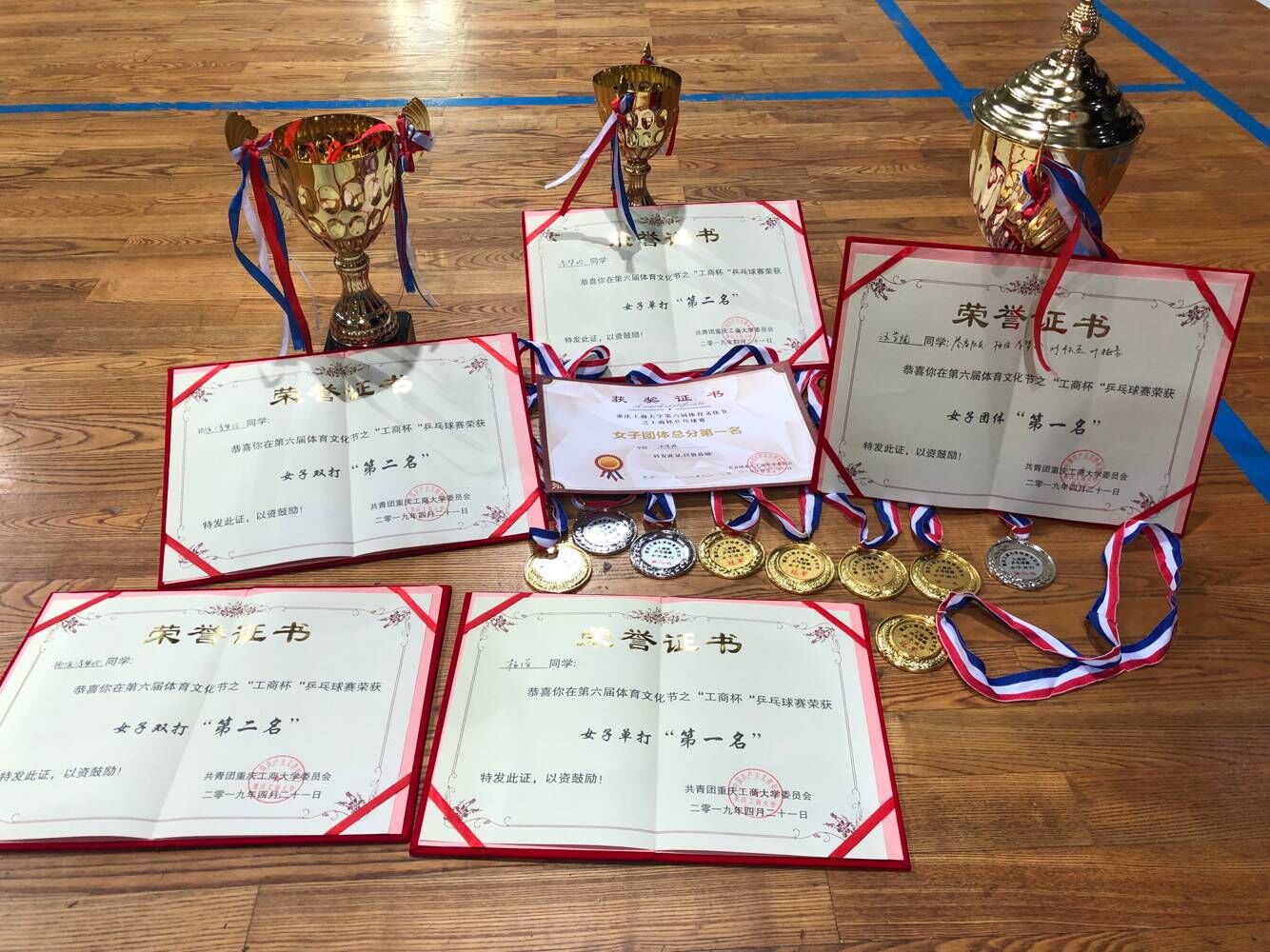 为丰富我校学生文体生活,活跃校园氛围,推动全民健身运动,构建健康和谐校园,4 月20日,437ccm必赢国际第六届体育文化节之“工商杯”乒乓球锦标赛在我校南岸校区体艺馆如期举行。经过两个比赛日的角逐,法学院乒乓球代表队以高超的球技,拼搏的精神,团结的力量,一路过关斩将,在众多队伍中脱颖而出。其中,法学院女团各项赛事均取得佳绩,总分位列第一;杨俊、李梦玲、刘怀杰、叶艳芳四名同学代表法学院摘得女子团体第一名桂冠;杨俊同学更是斩获女子单打第一名桂冠;男团方面,也取得了男子团体第七名的好成绩。