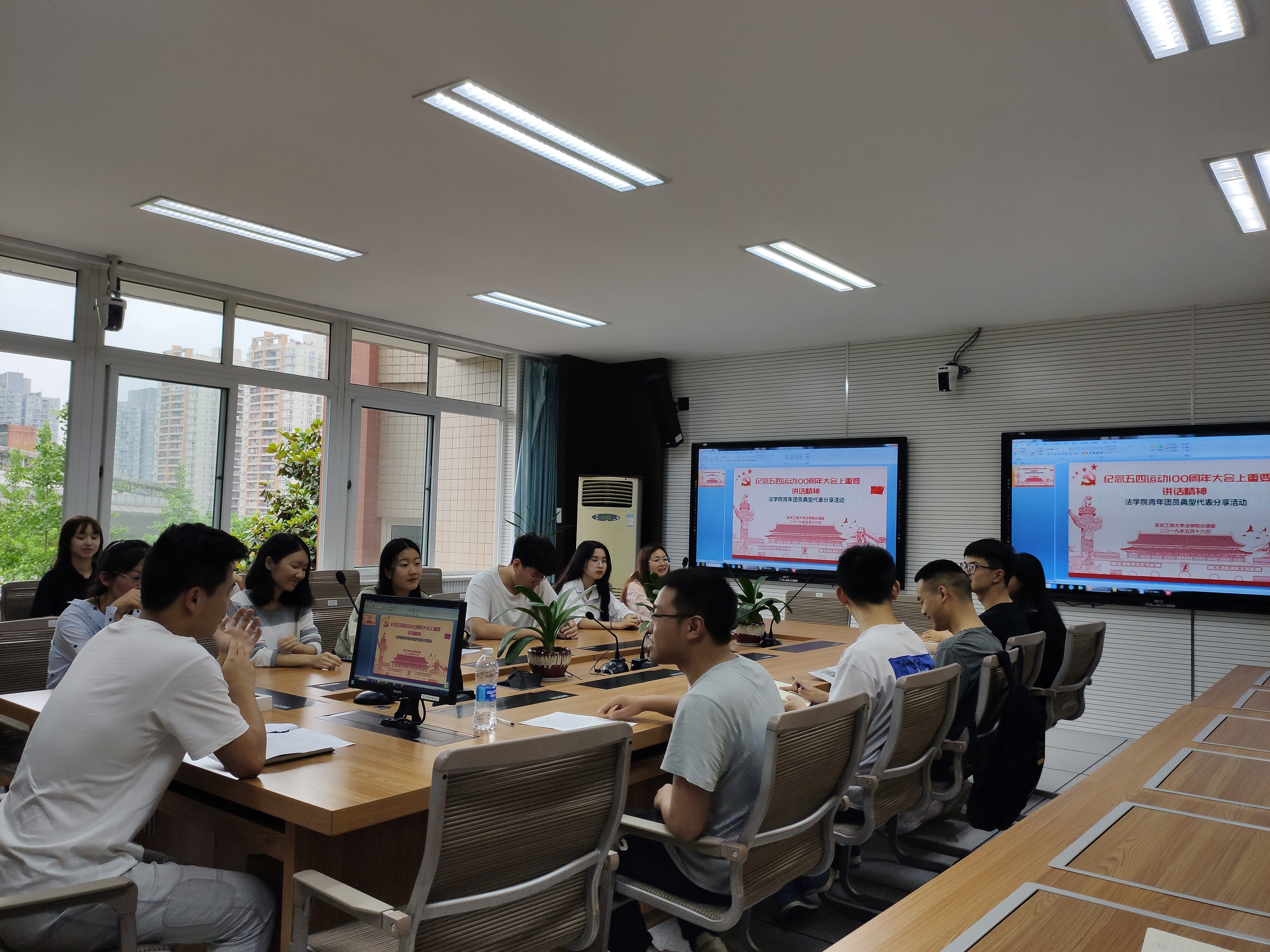 5月16日下午,法学院召开学习分享会,学习贯彻习近平总书记在纪念五四运动100周年大会上的重要讲话精神。法学院分团委书记罗观出席会议,法学院分团委、学生会、义协、辩论队以及各社团的青年代表参会座谈。会议由分团委副书记邓梓涵同学主持。