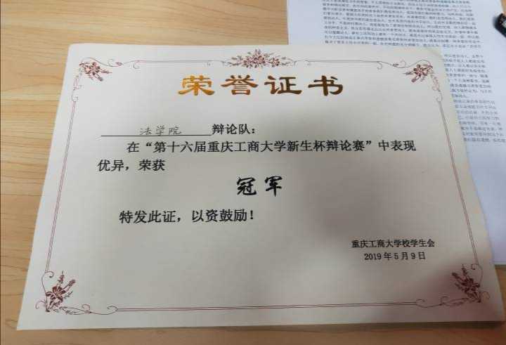 (冠军奖状)