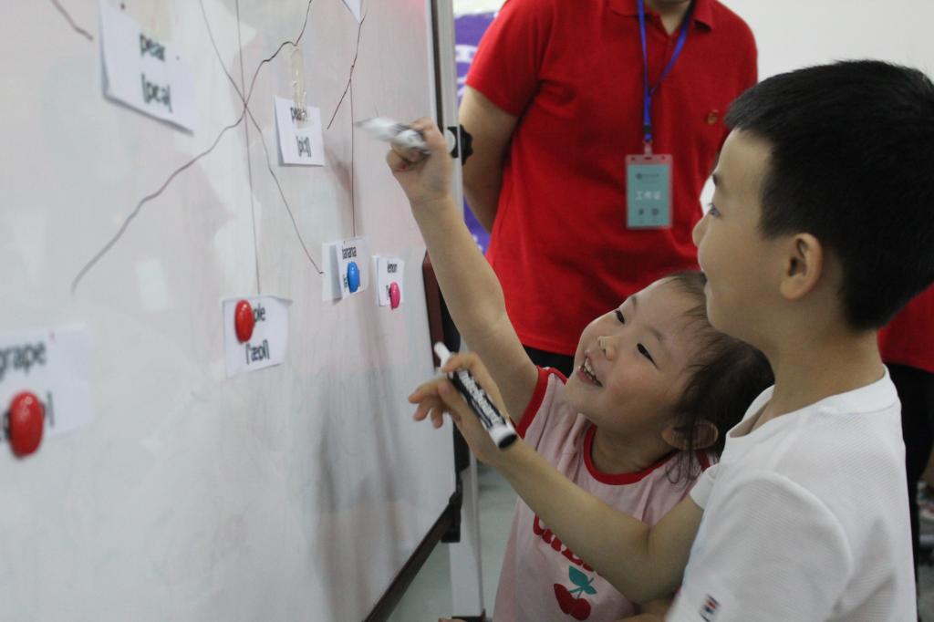 本次课堂以增强小朋友对英语的学习兴趣,敢于张口说英语为目的。首先,主讲人将同学们分为了八个小组,并以猜谜语的方式为切入点,通过鼓励大家张口说英语,到学习简单的英语单词,激发了同学们学习英语的兴趣。在趣味盎然的“英语连连看”游戏环节,主讲人结合所讲授单词进行了以英文方式交流为主的提问,使大家掌握了较为简单的英语问答模式;在紧张刺激的“水果蹲蹲蹲”游戏中,各小组成员积极展现自己,经过两轮比拼,宣讲团评选出了最佳小组以及六位“英语之星”,并颁发奖品与奖状。