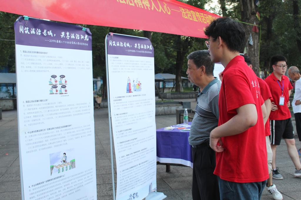 为贯彻落实推进基层法治建设,推动法治进程,7月10日下午,437ccm必赢国际法学院暑期“三下乡”社会实践活动市级重点团队——“青年普法志愿服务队”在中梁山街道龙门阵广场开展了社区普法宣讲活动。本次活动旨在让市民掌握维权意识,树立敢于维权的信念。