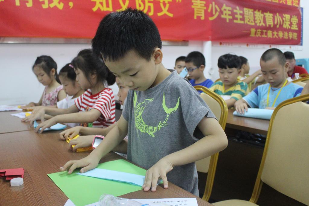 课堂上,宣讲团成员以视频的形式,将沉重的禁毒防艾主题生动形象地引入课堂。通过对毒品种类及其危害的介绍,引导社区小朋友辨别毒品,以提高自我保护的安全意识。紧接着,宣讲团成员为小朋友讲述了预防接触毒品的措施,防止孩子们轻易落入毒品陷阱;宣讲团成员讲授禁毒拍手歌,将毒品危害性深深印入小朋友心中,警示远离毒品。由于许多毒品一般以注射的方式摄入,宣讲团成员随之引入了对艾滋病的介绍。通过对艾滋病的作用原理、传播途径、预防措施的讲解,小朋友们对艾滋病有了初步的认识,对公共安全卫生也有了基础的了解。随后,主讲人引导孩子们树立起关爱艾滋病人、平等对待艾滋病人的精神准则,并寄语小朋友们增强自洁自爱的意识,提高辨识能力和防护能力,共同营造健康安全的成长环境。最后,宣讲团开展了手工小课堂,通过折叠爱心、千纸鹤等美好的造型,让小朋友感受到对艾滋病人的关爱,传播社会正能量。