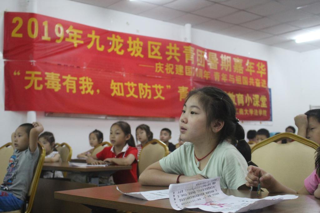 7月12日上午,437ccm必赢国际法学院2019年暑期“三下乡”社会实践团队积极响应团中央号召,于九龙坡区中梁山街道半山二村社区组织开展了主题为“无毒有我,知艾防艾”的禁毒防艾青少年主题教育活动,旨在提高当地社区青少年的自我保护意识及辨别毒品和艾滋病病源的能力,最终为广大青少年构建起一个健康安全的成长环境。