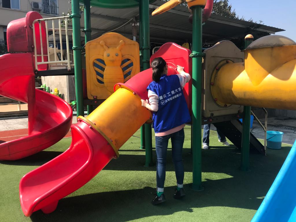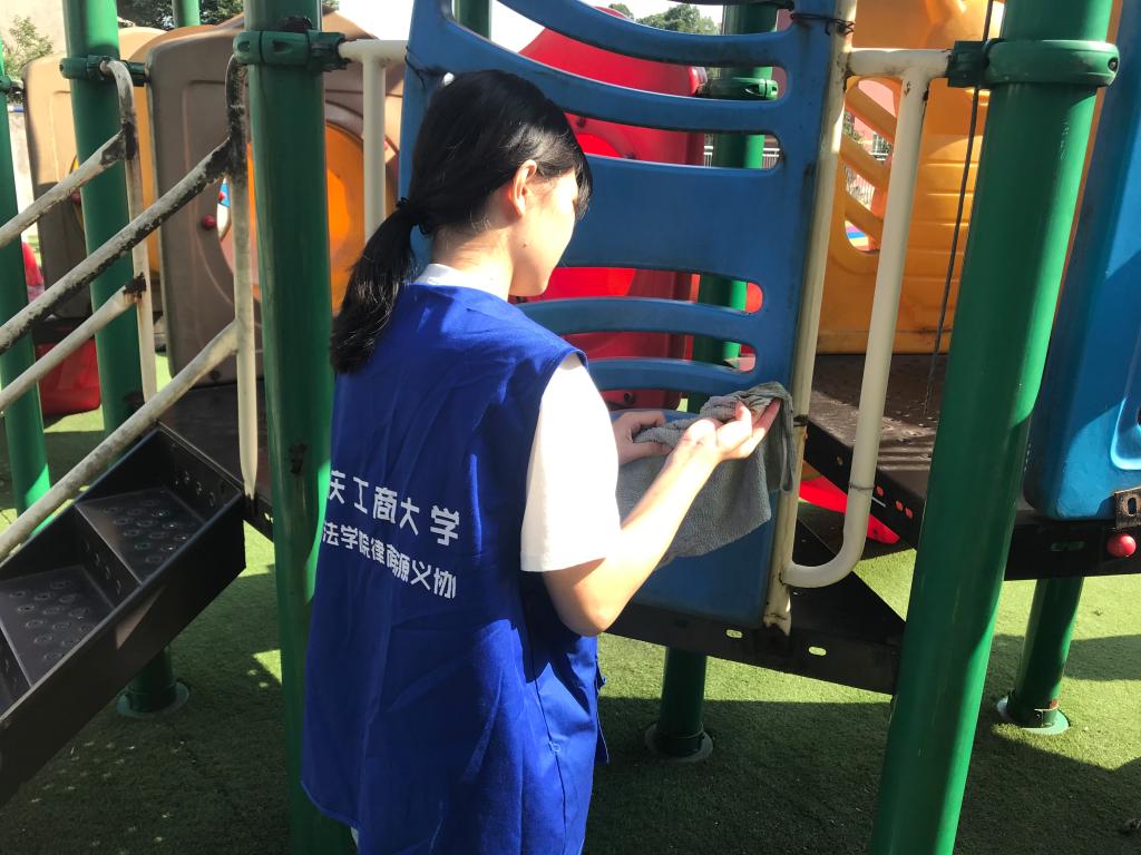 志愿者们于上午八点整准时出发。到达乐一融合幼儿园与负责人确认流程后,志愿者们便着手整理小朋友们的玩具、打扫滑梯和秋千。短暂的午休过后,志愿者们带领小朋友去往乐一小学部做游戏,大手牵小手,在纯真的对话中享受日暮带来的舒适。小朋友们脸上表现出的轻松便是他们最大的成功。随着最后的一张合影的拍摄,本次志愿者活动在浓浓的不舍中结束。