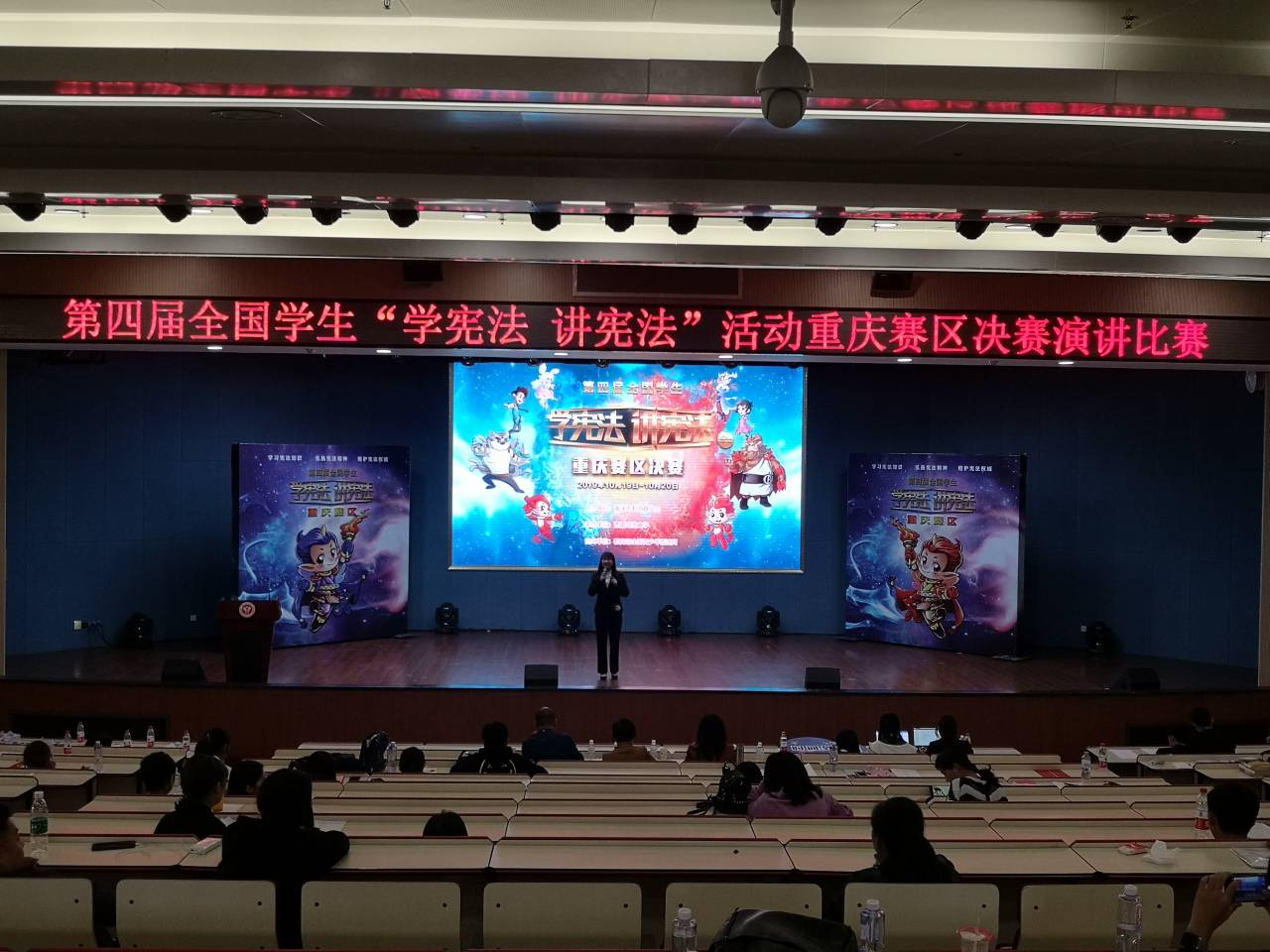 为贯彻落实习近平总书记关于宪法学习宣传教育的系列重要指示精神,按照中央全面依法治国委员会2019年任务安排和中央宣传部等部门《关于组织开展宪法学习宣传教育活动的通知》要求,在青少年学生中普及宪法知识、弘扬宪法精神、树立宪法权威,引导青少年学生自觉成为宪法的忠实崇尚者、自觉遵守者、坚定捍卫者。2019年10月19、20日,由重庆市教育委员会主办、西南政法大学承办,教育部全国青少年普法网协办的全国学生“学宪法,讲宪法”活动重庆赛区比赛在西南政法大学举行。本次比赛分为演讲比赛和知识竞赛两部分,我校法学院学生罗宇露和陈佳依在指导老师袁维勤副教授、胡婧博士及领队罗观老师的带领下,代表437ccm必赢国际参加了两项比赛。