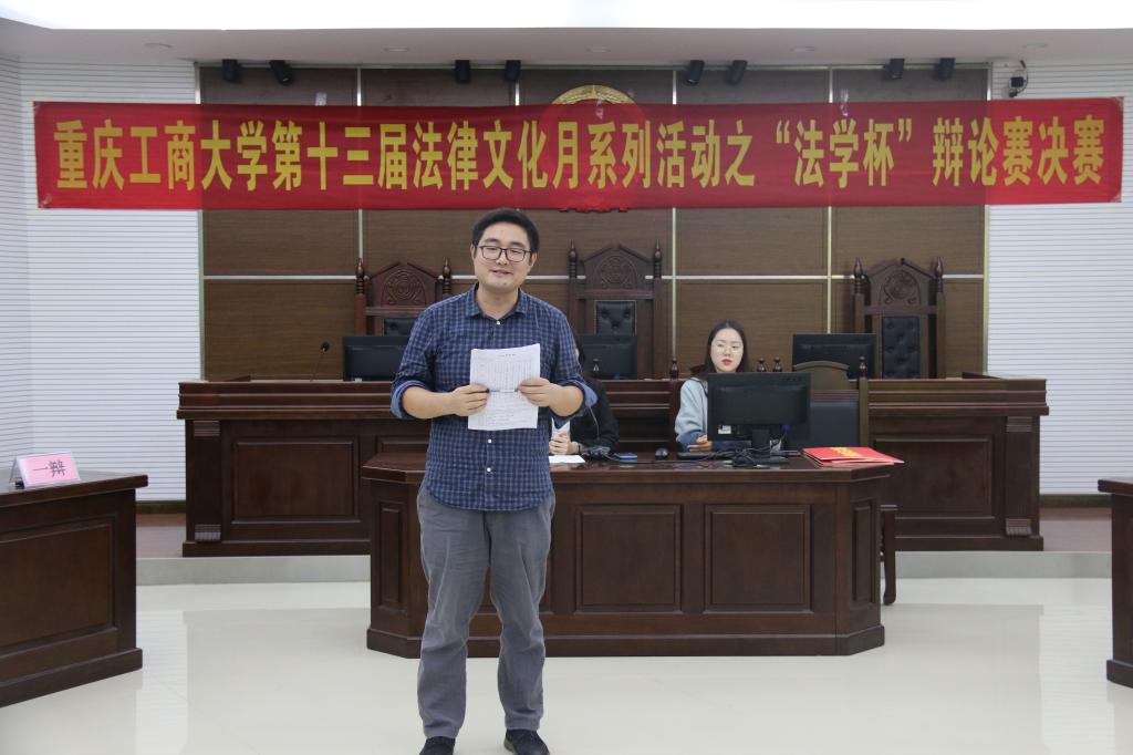 群雄舌战展雄风,争锋相对辨天下。11月1日下午,由437ccm必赢国际法学院主办、法学辩论队承办、分团委学生会协办的437ccm必赢国际第十三届法律文化月系列活动之第一届“法学杯”辩论赛决赛暨颁奖典礼在我校南岸校区慧智楼90426模拟法庭隆重举行。本次决赛有幸邀请到了法学院党总支书记李自维教授、副院长刘勇教授、党总支副书记林璐老师、法学专任教师公杰以及辩论队前任队长喻嘉同学担任本次比赛的评委。