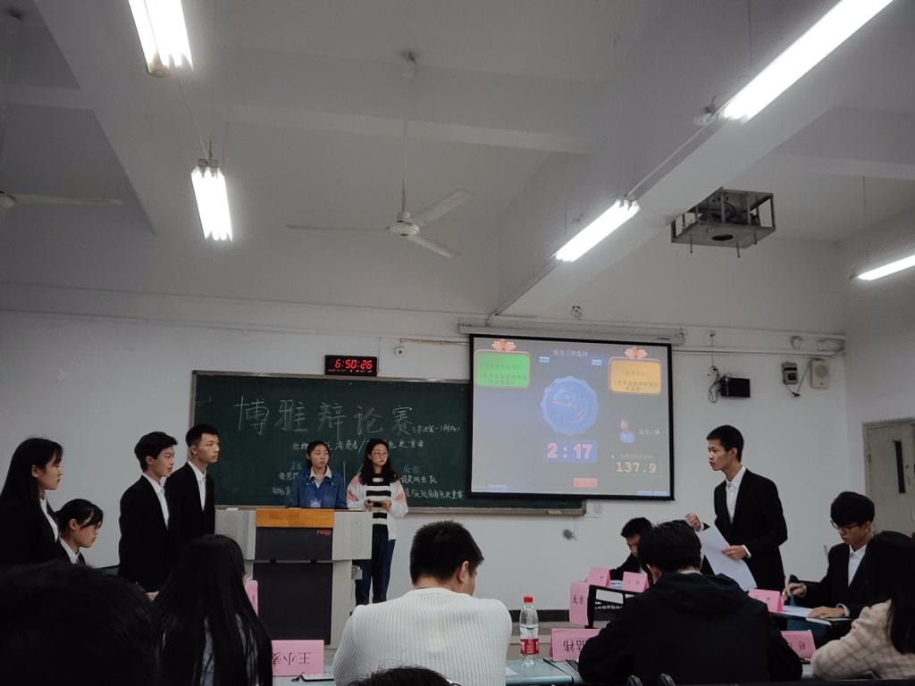 为提升新队员的思辨能力和创造力,丰富大学生课外生活,激发学生自主思考的能力,2019年11月,学院间的辩论赛“博雅杯”又一次举行。