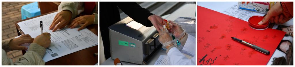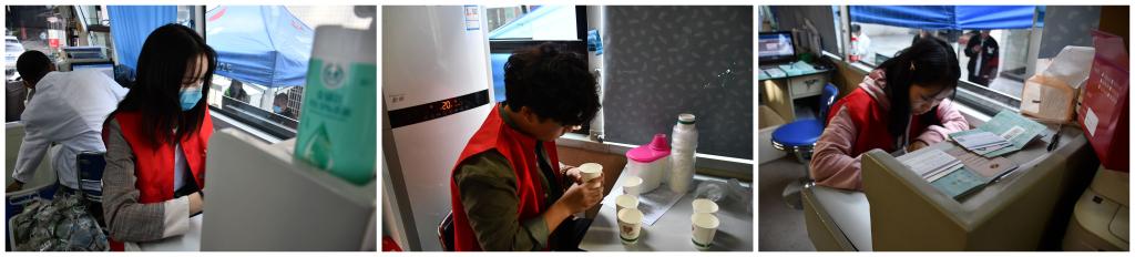 志愿者们主动为前来咨询相关献血事宜的同学们答疑解惑,并引导参与同学做好献血前的准备工作。活动中,志愿者为待献血的同学送上糖水,协助医护人员登记信息,带领献血同学到休息区休息,用自己的实际行动,传达奉献友爱互助进步的志愿者精神。