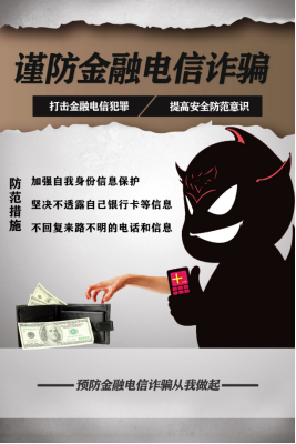 随着社会的飞速发展和信息技术的不断进步,各种新型的金融、电信诈骗犯罪形式层出不穷,大学生已成为金融、电信诈骗犯罪的主要侵害群体。为了进一步加强我校师生防范金融、电信诈骗的意识和能力,遏制网络诈骗案件在我校的高发势头,2020年12月,437437必赢国际以“防金融、电信诈骗”为主题,在全校学生中开展宣传教育活动。号召同学们从身边的现有的诈骗案例中学习,并将所收获的内容以摄影作品、微电影作品、手抄报作品、动画作品、案例分析、论文等形式表达出来,从而提高大学生的防诈骗意识。