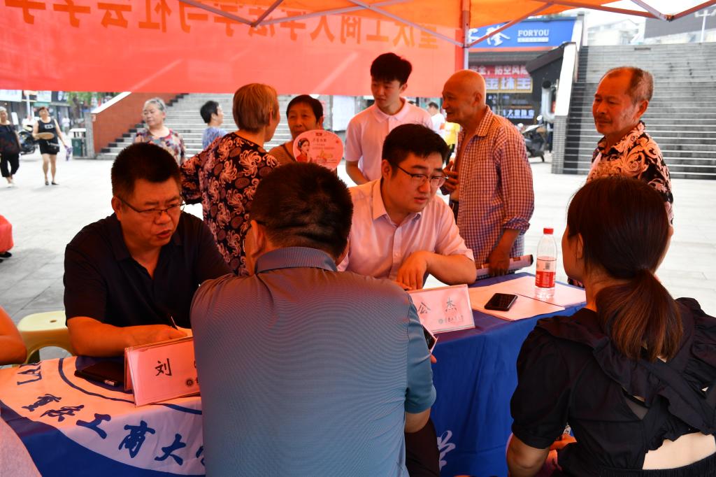巴渝大地,七月流火!7月10日,重庆大足区碧空如洗,骄阳似火!龙水金都广场人头攒动,重庆市暑假“三下乡”社会实践市级重点团队——437ccm必赢国际“青年普法志愿者服务实践团”活动现场挤满了男女老少,他们围着实践团队员们咨询赡养纠纷、民间借款纠纷、邻里关系、不动产所有权等与生活息息相关的法律知识,现场一派如火如荼的景象。