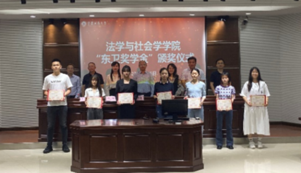 接着,进行了颁奖仪式,主席台的各位领导为获得奖励的40名本、硕学生代表颁发了荣誉证书。21级法律硕士(非法学)班的张一丹同学代表获奖同学发言。她向学校、学院以及东卫(重庆)律师事务所表达了感谢,并表示未来会坚定决心和信心,再接再厉努力学习,不负学校和社会的期望。