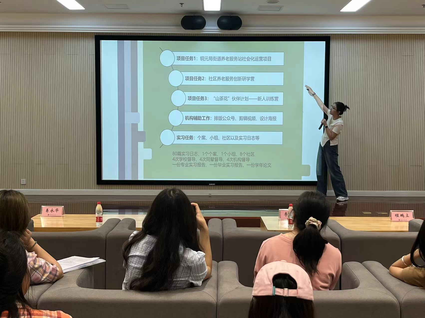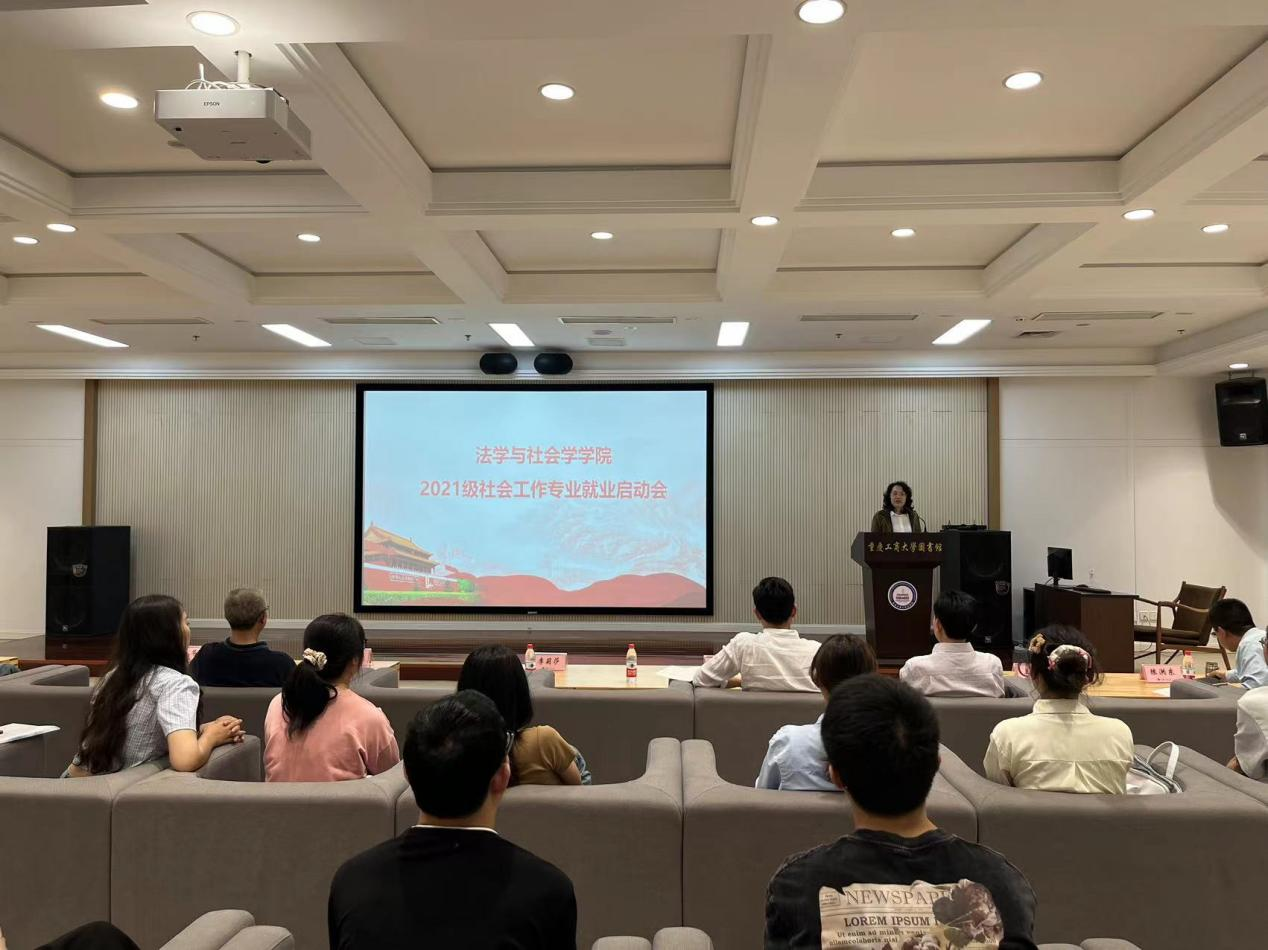 为提前部署2025届毕业生就业工作,2024年5月10日下午,437437必赢国际在图书馆试听阅览室召开2021级社会工作专业就业工作启动会暨学长就业讲堂。学院党委书记李莉莎,专职组织员陈善国,社会工作系主任陈洪东,学团办主任何祖润,教师代表王成荣、程鹏立,2021级辅导员杨威以及2021级社会工作专业全体同学到场参会。