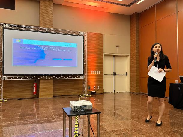 张琨蓓老师进行了主题为“A NetLogo Modeling Algorithm for Predicting the Evolution of Data Transfer Law :Can we Encourage Cooperation in the Fragmented Legal Regime?”(基于 NetLogo 算法建模的数据传输法律演化发展预测:我们能在碎片化的法律体系中实现国际合作吗?)的报告。她从计算性模型介入法律规制的可行性、客观性和创新性展开论证,并通过模型运行结果展示了研究成果。在会议现场与会人员围绕模型的改良和运行成果的深入解读展开激烈讨论。
