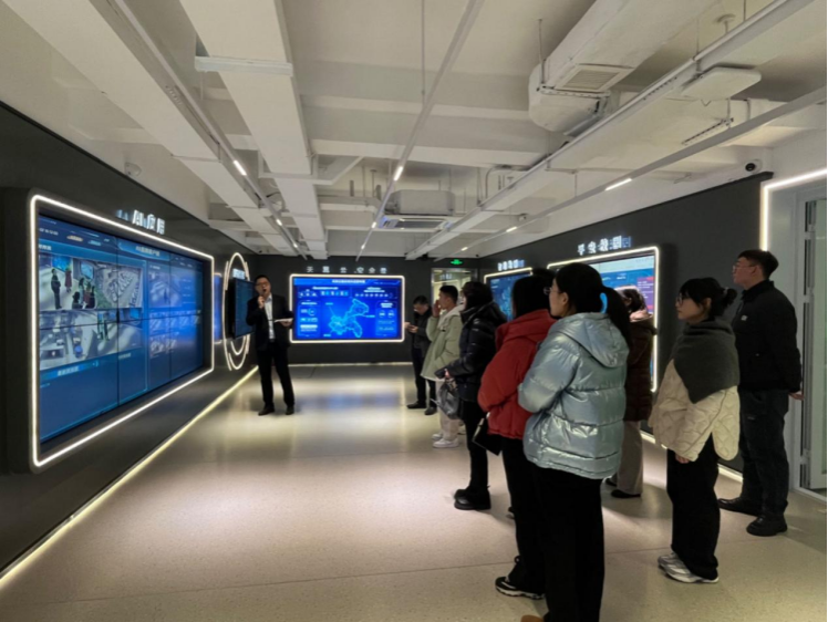 参观交流中雷波代表公司详细介绍了公司党建引领业务发展的特色亮点,向学院一行展示了现代化数字技术在社会治理、安全防范、网络直播等领域的前沿运用,并从大学生职业生涯规划指导、公司实习实训营、人才招聘需求等方面进行讲解。刘勇介绍了学院专业发展情况、学科融合优势及下一步向数字化发展的建设思路,李莉莎介绍了学院的党建情况、就业情况及大学生实习实践需求,双方洽谈了实践人才培养、实习基地建设等合作愿景。
