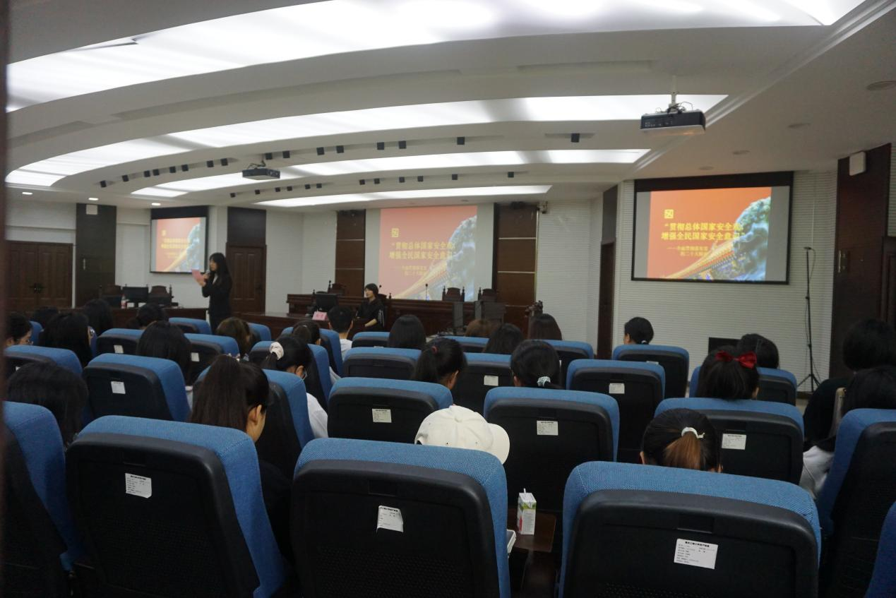 本次讲座内容紧扣“国家安全”战略发展需要,围绕如何从刑事立法、刑事司法、刑法思维三个角度看待“总体国家安全观”展开。胡霞以严谨专业的学术思维结合鲜活生动的案例为同学们带来精彩讲述,现场反响热烈。随后,普法志愿者们于校内分发宣传单,向来往过路的师生宣讲相关法律知识以及维护国家安全的重要性,帮助我校师生增强忧患意识,推动大安全理念深入人心。