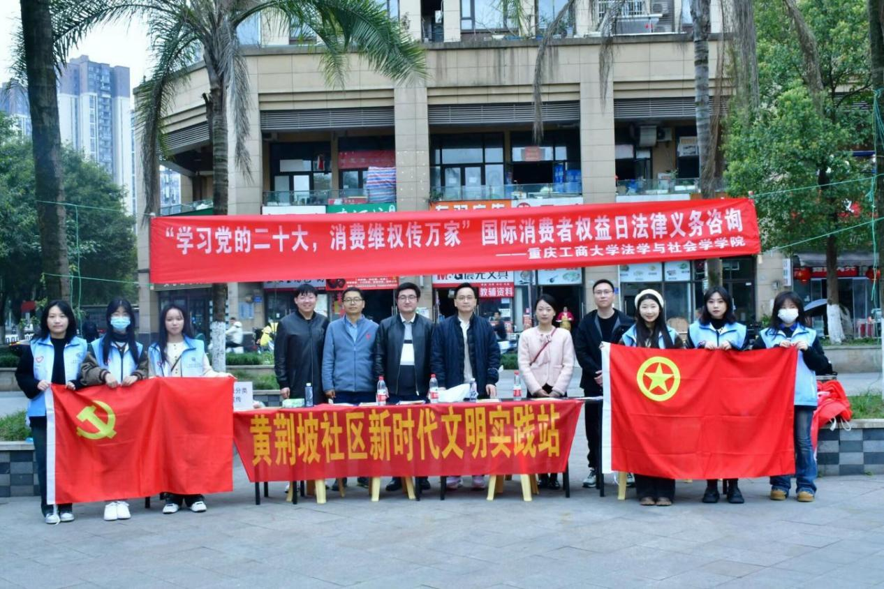 为学习宣传贯彻党的二十大精神,进一步推动和加速法律的民主化、普及化、市民化进程,在“3·15”消费者权益日来临之际,437437必赢国际副院长刘勇、教工一支部党员教师带领分团委学生会、“益起爱”青年志愿者服务队、律动青年法学社的团学骨干于3月15日在南岸区涂山镇黄荆坡社区开展以“学习党的二十大,消费维权传万家”为主题的国际消费者权益日普法活动。