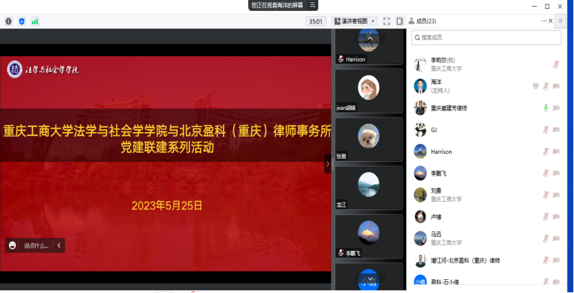 学院党委李莉莎书记对北京盈科(重庆)律师事务所长期以来给予学院高质量发展的支持,以及对本次党建联建活动的重视表示衷心感谢,并结合本次党课内容,要求全体教工党员创新教学方法,培养适合用人单位需要的人才,完成好为党育人、为国育才的光荣使命。