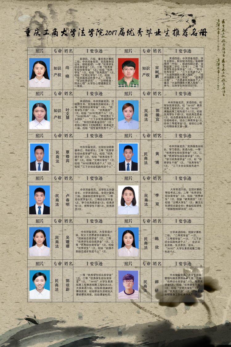 法学院2017届优秀毕业生公示