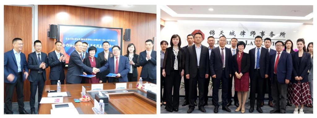 4月14日,宋豫一行走访了校友企业上海锦天城(重庆)律师事务所,该所规模及收入等方面均位居重庆律所前十,看望了律所高级合伙人熊刚、王珂等10余名校友。座谈交流中,校友们感谢母校的培养,母校的一山一水、一草一木、一砖一瓦都是那么亲切温暖,虽已离校多年,但厚德博学、求是创新的校训时常在耳边回荡。母校给予的自信和力量,激励着校友们奋进和成长。双方本着“优势互补、发展互促、互利共赢”的原则,充分发挥自身优势,在人才培养、法学研究、学科科研、专业培训、学生实习实践、毕业生就业等方面进行了深入交流,开展多维合作,不断提高人才培养质量。黄文与熊刚代表双方签署合作协议,并向锦天城授牌学院实习实践基地。