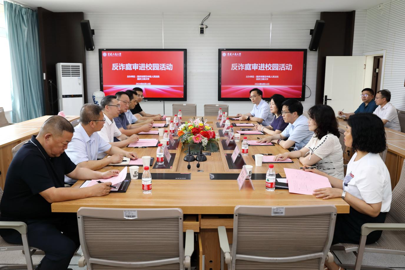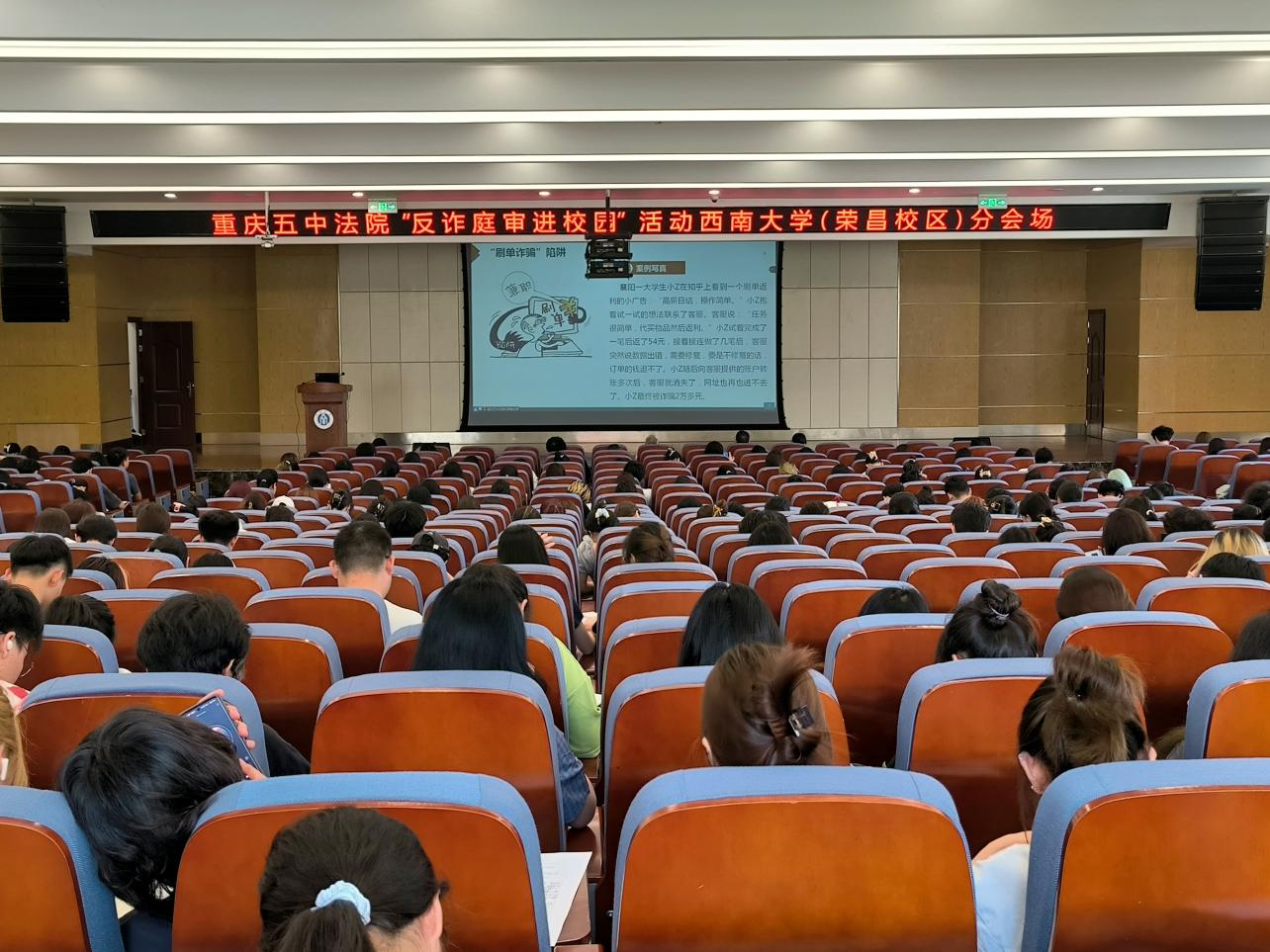 6月14日,437437必赢国际联合重庆市第五中级人民法院举办大学生诈骗案件真实庭审进校园活动,学校党委书记曾维伦、党委副书记宋豫,重庆市第五中级人民法院院长胡红军、党组成员朱文林出席活动。全国人大代表傅红涛、殷其龙、黄大勇、刘平,全国政协委员卢跃富等5名全国、市级人大代表和政协委员现场听审,40余名代表委员线上听审,我校保卫处负责人以及14个学院的近150名本、硕学生线上线下旁听庭审,庭审同时向西南大学、重庆医科大学、重庆交通大学等12所高校约4000余名师生直播,活动受到人民日报、中央电视台、新华社等10余家媒体关注报道。